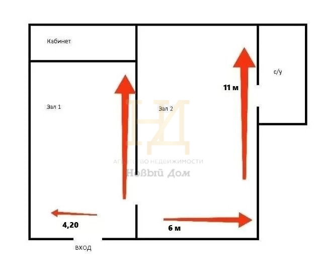Два крупных зала: 60 м² + 40 м²