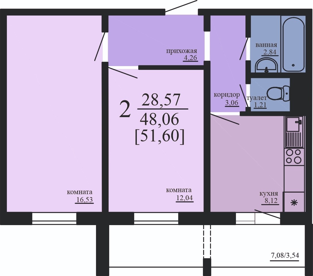 Все комнаты изолированы, площадь 52 кв.м с учетом 2-х балконов, выход с кухни и со спальни!