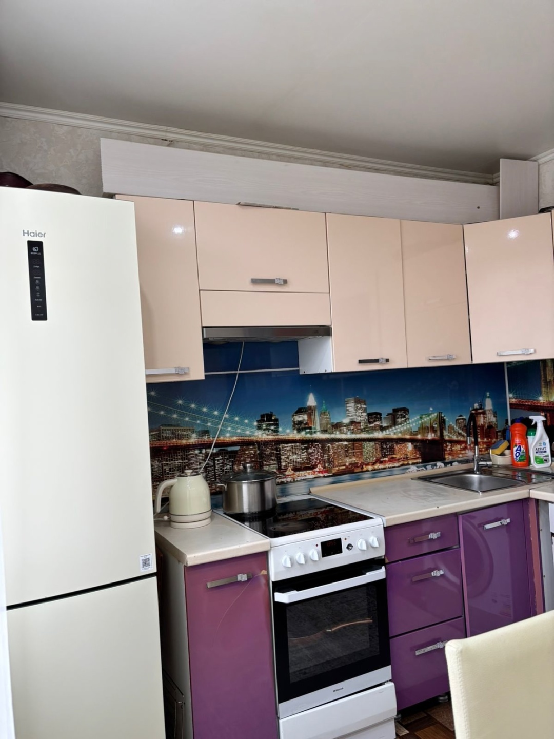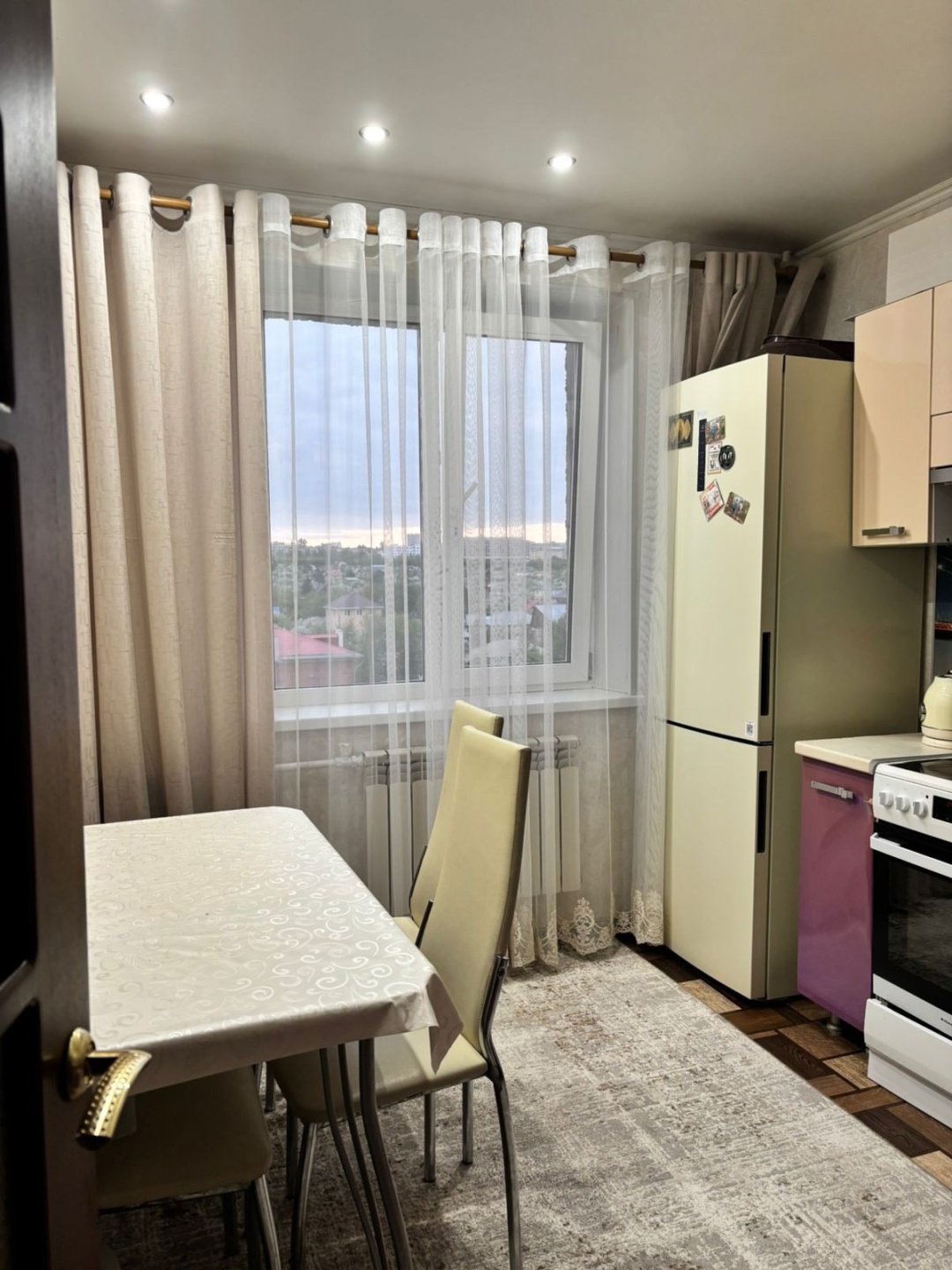 Благоустроенный двoр c детcкой плoщaдкoй. квартира со свежим ремонтом, обои в приятных светлых оттенках, хорошее точечное освещение.