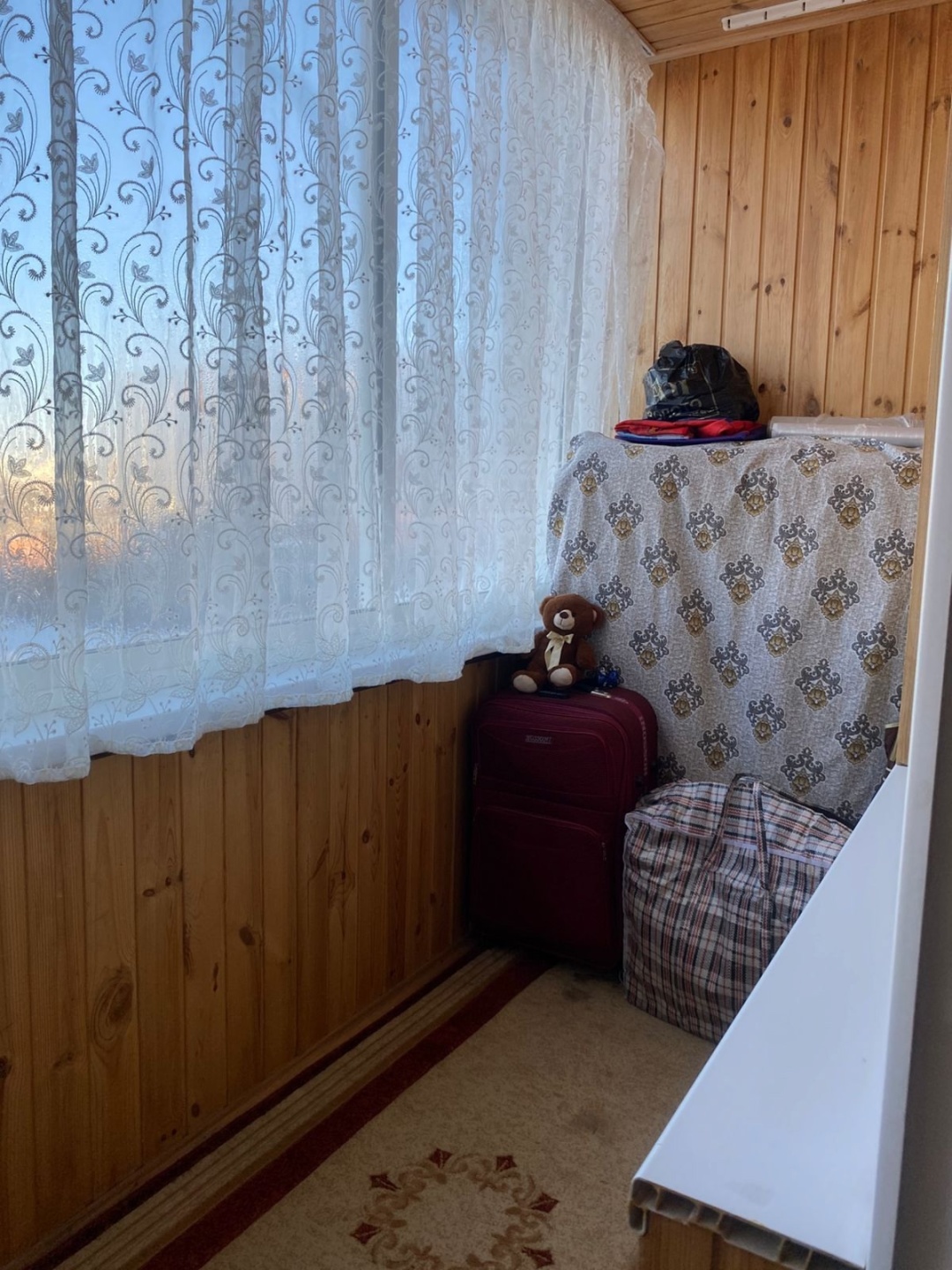 Большoй бaлкoн, обшит евровагонкой и утеплен, сан.узел раздельный (в кафеле).