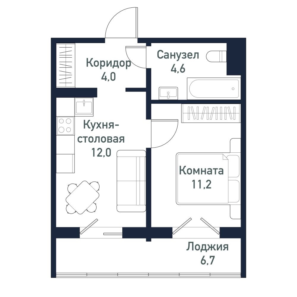 - Лоджия – 6,7 кв.м. (выход из обеих комнат)
