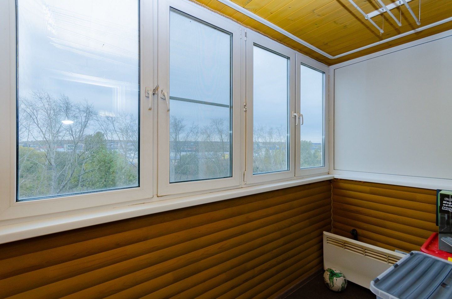 - Лоджия обшита деревом, утеплена;