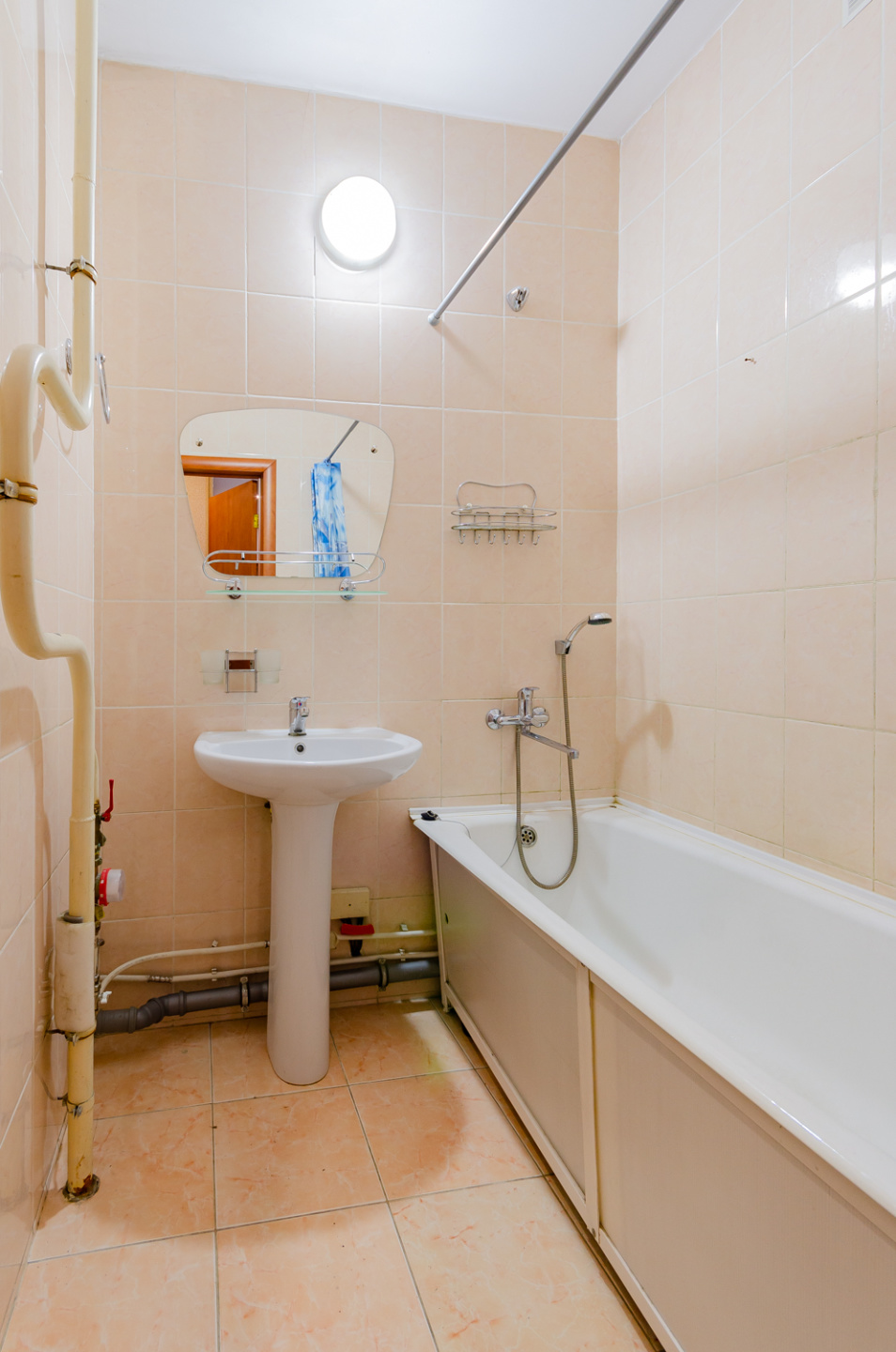 - В санузлах кафель на полу и во всю высоту стен;