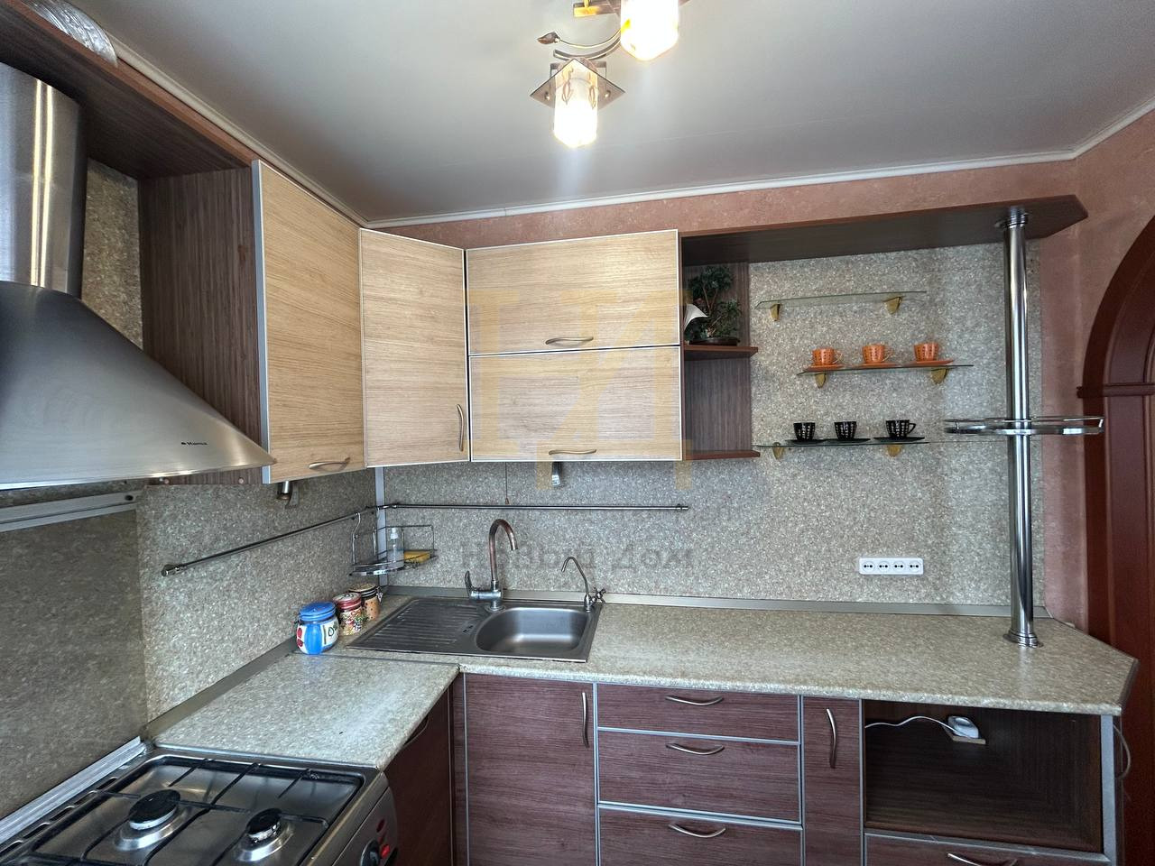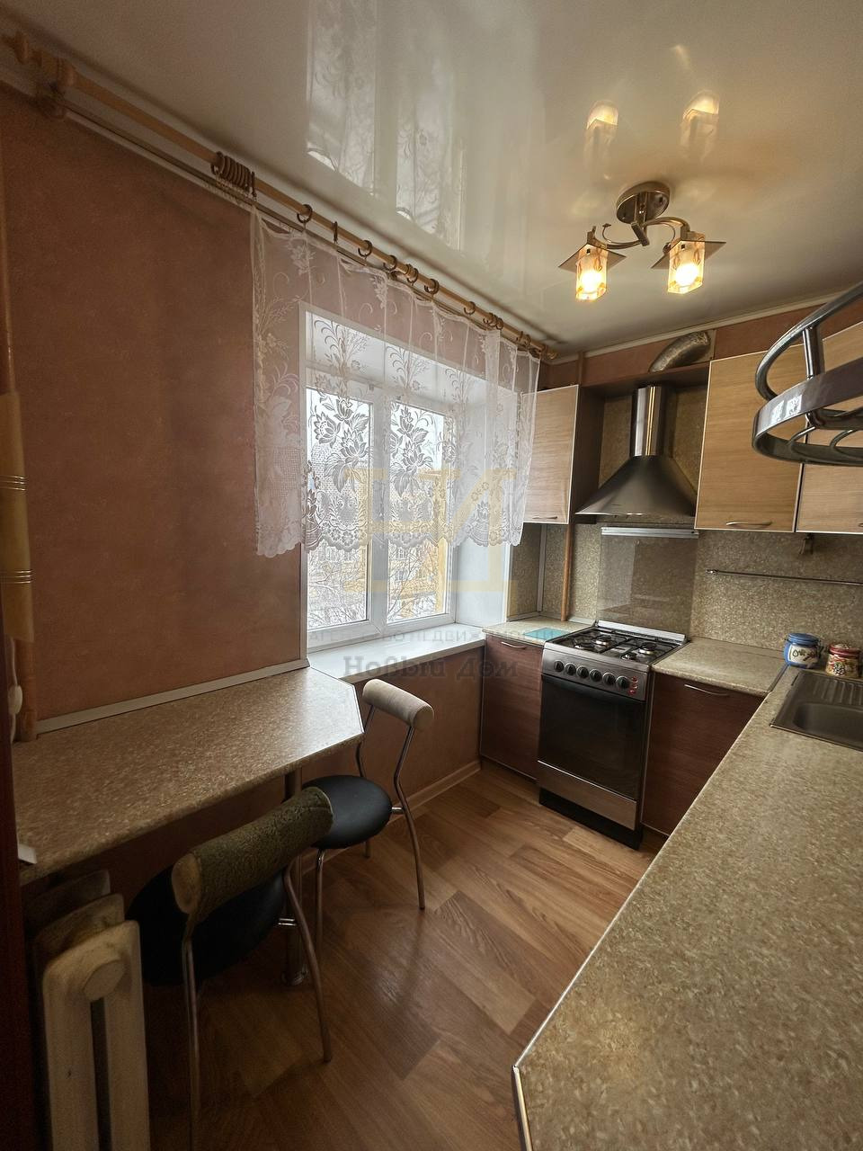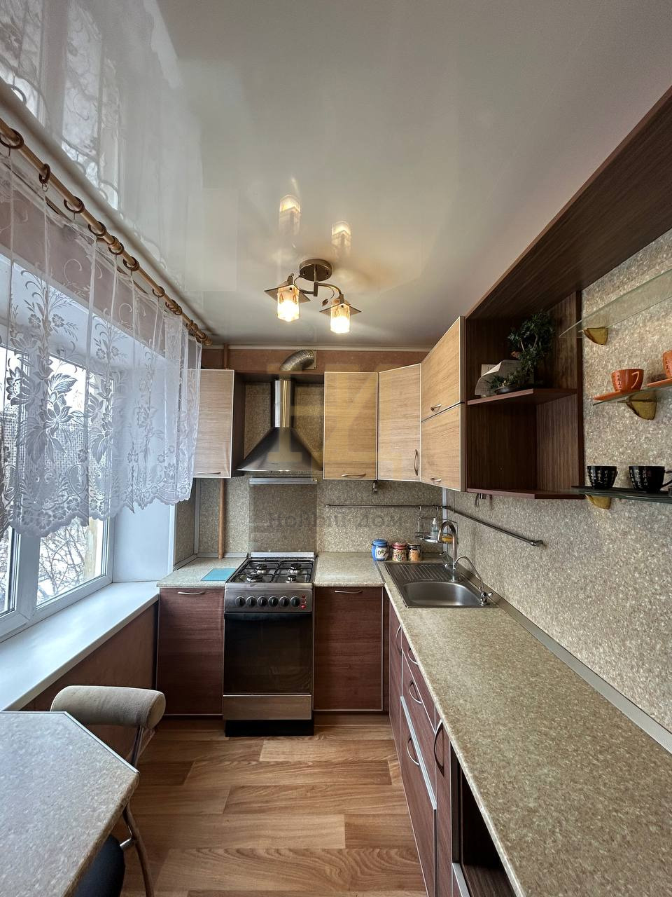 Просторная кухня оборудована газовой плитой и современной мебелью. Санузел совмещённый, оснащён качественной сантехникой.