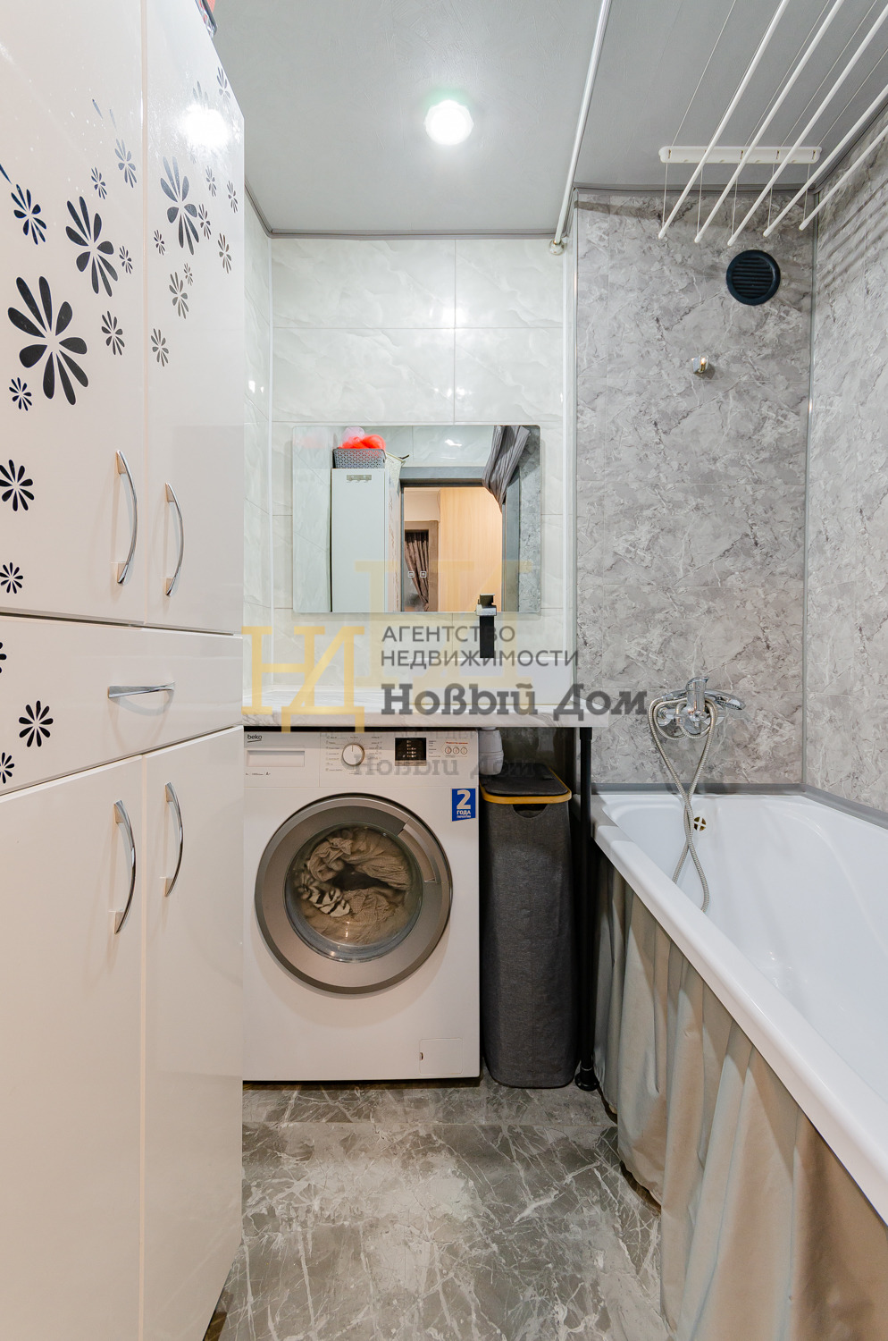 - Санузлы обшиты панелями, на полу плитка.